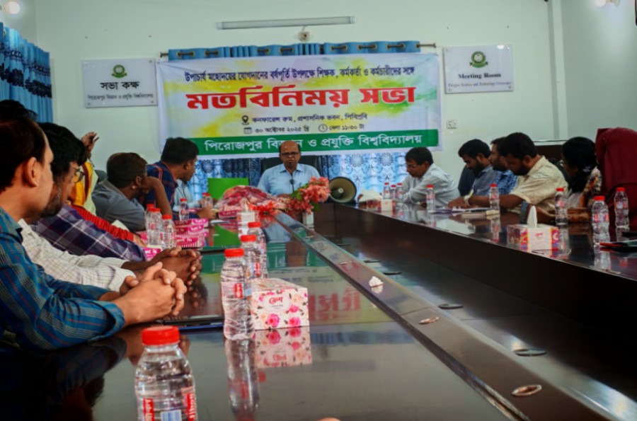 পিরোজপুর বিজ্ঞান ও প্রযুক্তি বিশ্ববিদ্যালয়ের (পিবিপ্রবি) মাননীয় উপাচার্য অধ্যাপক ড. মো. শহীদুল ইসলামের দায়িত্ব গ্রহণের বর্ষপূর্তি উপলক্ষে শিক্ষক, কর্মকর্তা ও কর্মচারীদের সঙ্গে এক মতবিনিময় সভা অনুষ্ঠিত হয়েছে।