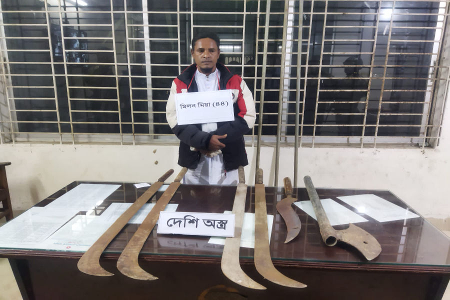 অভিযানকালে তার কাছ থেকে বিপুল পরিমাণ দেশীয় অস্ত্র উদ্ধার করা হয়। উদ্ধারকৃত অস্ত্রের মধ্যে রয়েছে, চার টি রাম দা, এক টি চাইনিজ কুড়াল এবং একটি চপার ছুরি।