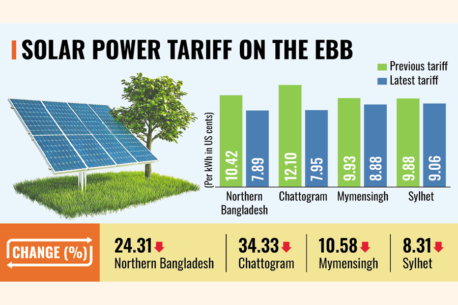 সাম্প্রতিক টেন্ডারে, বিপিডিবি উত্তর বাংলাদেশের সোলার প্লান্টগুলোর জন্য প্রতি কিলোওয়াট-ঘণ্টা (১ ইউনিট) ৭ দশমিক ৮৯ ইউএস সেন্ট ট্যারিফ পেয়েছে।